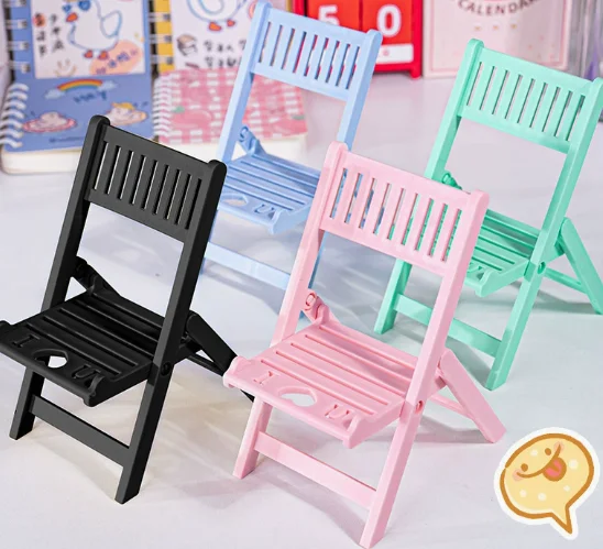 Suporte de Telefone Mini com Design de Cadeira de Praia, Cores Aleatórias, Dobrável, Acessório de Mesa Fofo para Smartphones e Tablets com foto grande, leitura rápida e saída direta para AliExpress LATAM.